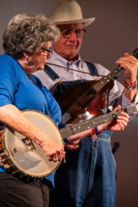 “Laura has recorded numerous solo albums, including Let Me Linger, Down the Road, and Sing it Yourself! She is instrumental in maintaining the tradition of shaped note singing from the Christian Harmony in workshops at Merlefest and The Earl Scruggs Center and annual singings across the region. Proficient in instruments including banjo, guitar, and autoharp, she also teaches multiple instruments and offers vocal coaching. She has vast experience teaching residencies in Southern Mountain Music to public school children of all ages. She has been a mainstay at numerous festivals in western North Carolina for decades and serves as a Master of Ceremonies for The Mountain Dance and Folk Festival, the oldest folk festival in the nation, and at Shindig on the Green every summer in downtown Asheville, NC. Laura serves as a consultant to the Blue Ridge Music Trails of North Carolina project which strives to sustain the rich music traditions of the western North Carolina and the region. Laura was inducted into The Blue Ridge Music Hall of Fame in 2017.